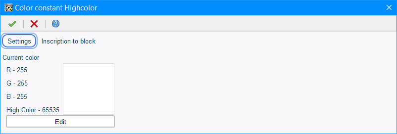 Il blocco (Figura 1) viene utilizzato per impostare una costante di colore nel formato HightColor.
