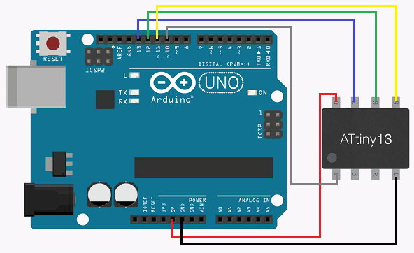 Collegamento di Attiny13 ad Arduino Uno(Figura 4).