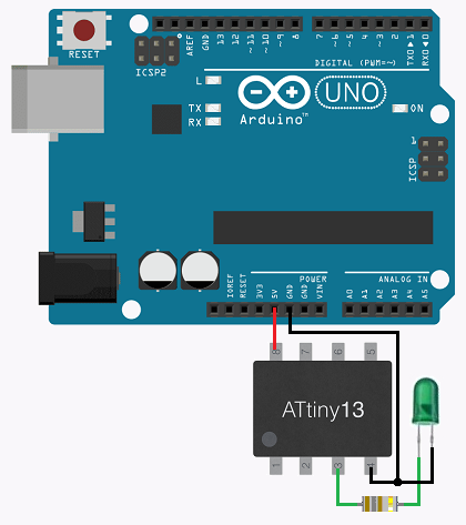 - ATtiny13 Pin 6 -> Arduino Uno pin 12