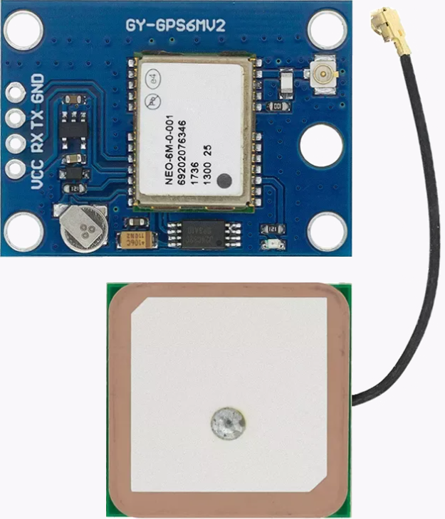 - Neo-6M GPS - ricevitore prodotto da u-blox. Questo modulo utilizza la tecnologia più recente per fornire informazioni precise sulla posizione. Tensione di alimentazione del modulo 3-5V. La linea di dispositivi è rappresentata dai tipi G, Q, M, P, V e T con le loro caratteristiche uniche. Il tempo di avvio a "freddo" è di circa 27 secondi.