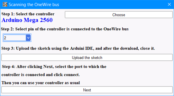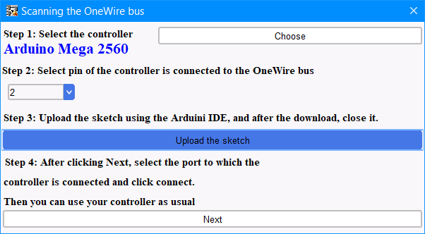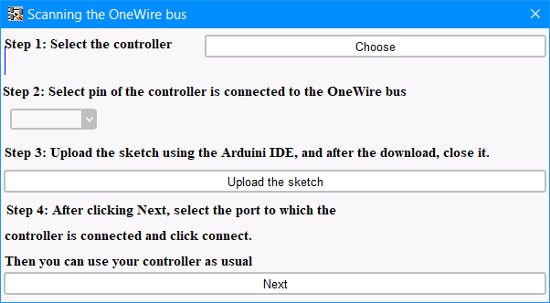 Ci sono quattro passaggi per lavorare con lo strumento "Scanning the OneWire bus":