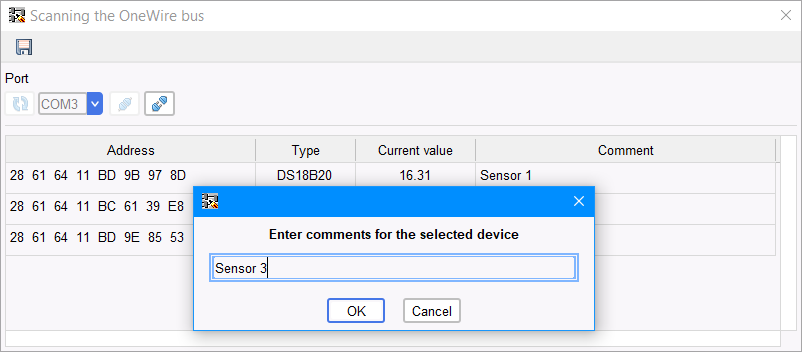 Finestra di scansione del bus OneWire (Figura 2).