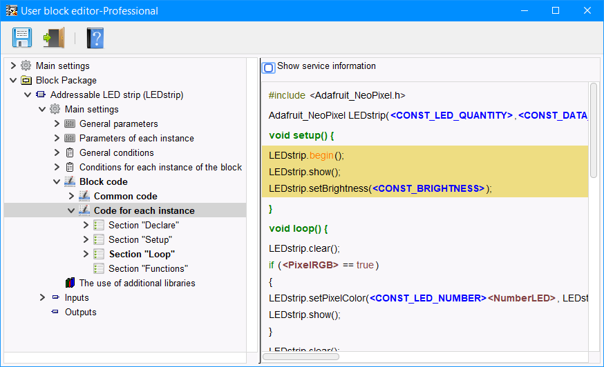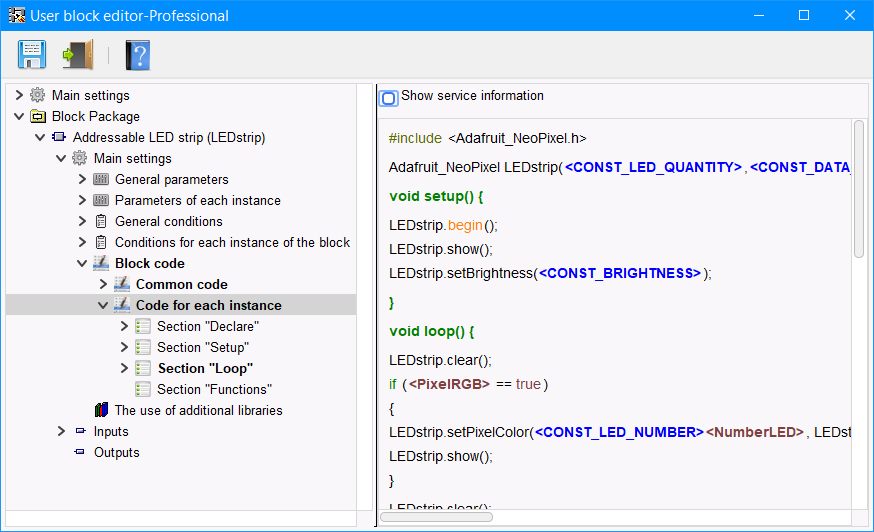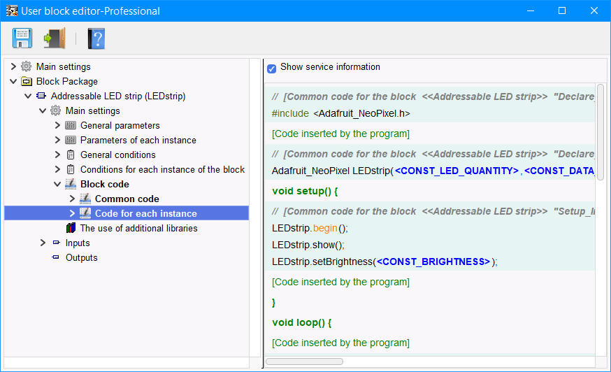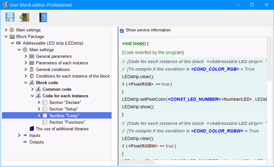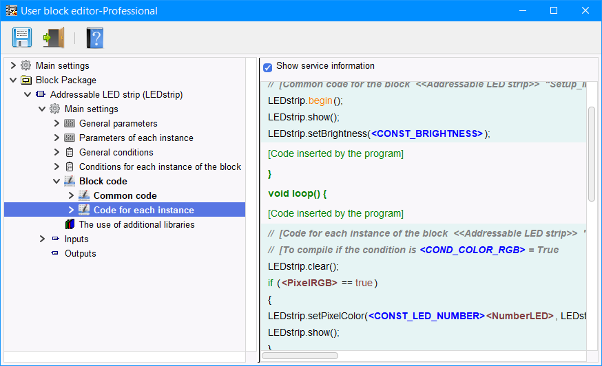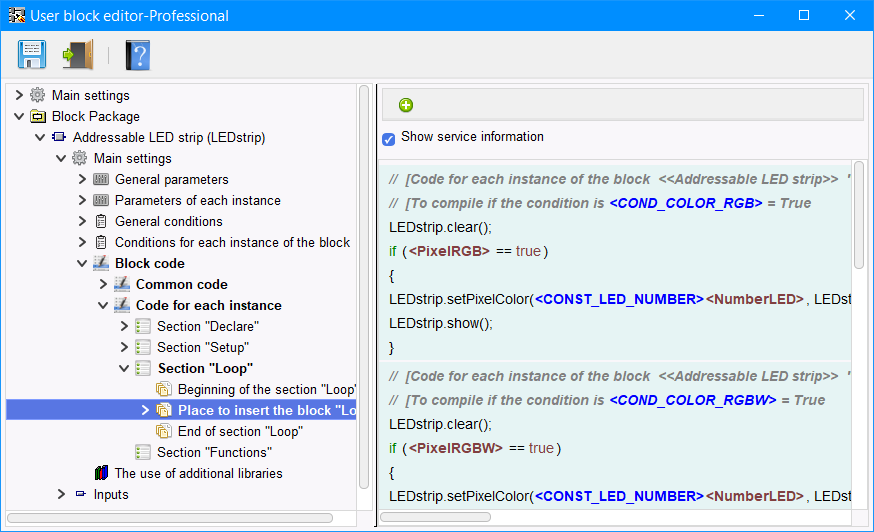 Ci sono due modalità per visualizzare il codice. Con e senza informazioni di servizio. Questi metodi vengono cambiati utilizzando la casella di controllo "Show service information". In questo caso viene visualizzato solo il codice inserito e il codice principale inserito dal compilatore (Figura 4).